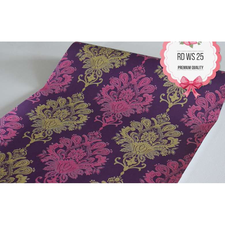 MURAH!! WALLPAPER STICKER 10M GOLD & PURPLE BATIK CLASSIC WALPAPER DINDING MOTIF BATIK UNGU EMAS